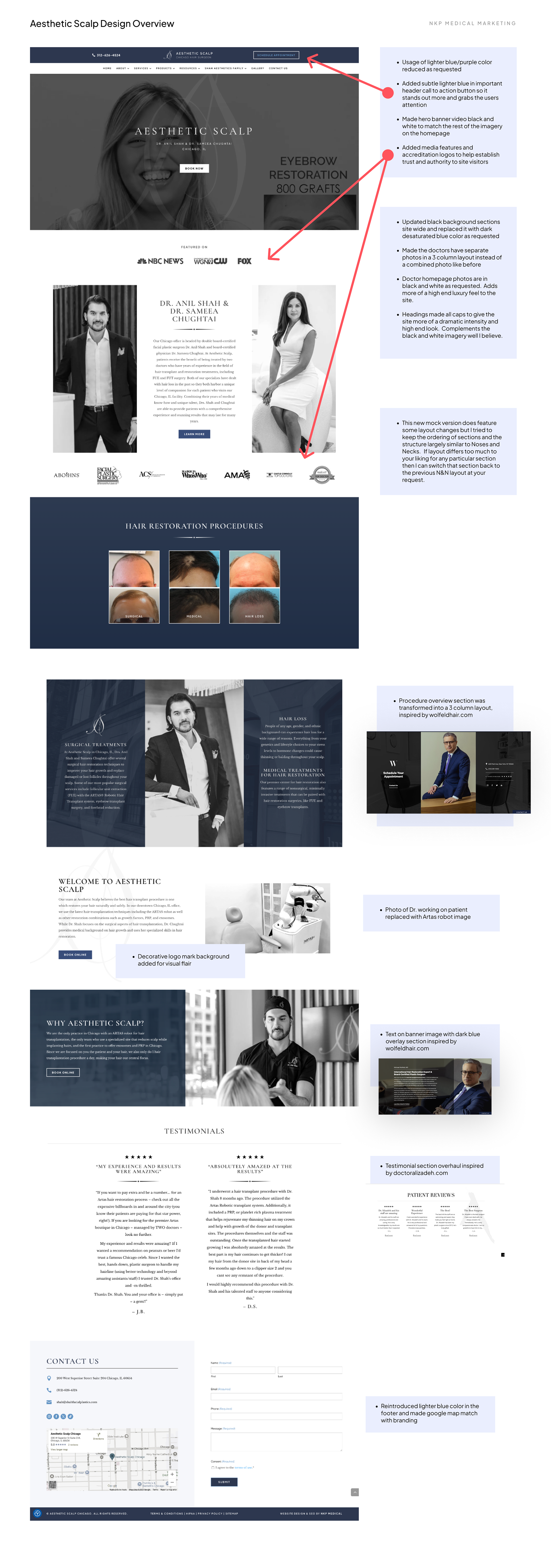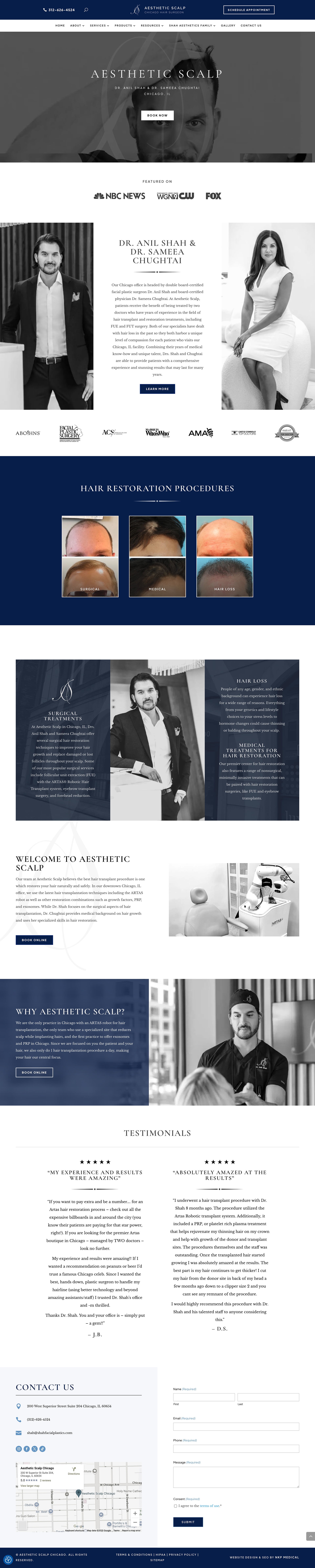 Hair surgery website for NKP Medical's client, Aesthetic Scalp Chicago Hair Surgeon, which I designed in Figma and built in WordPress.